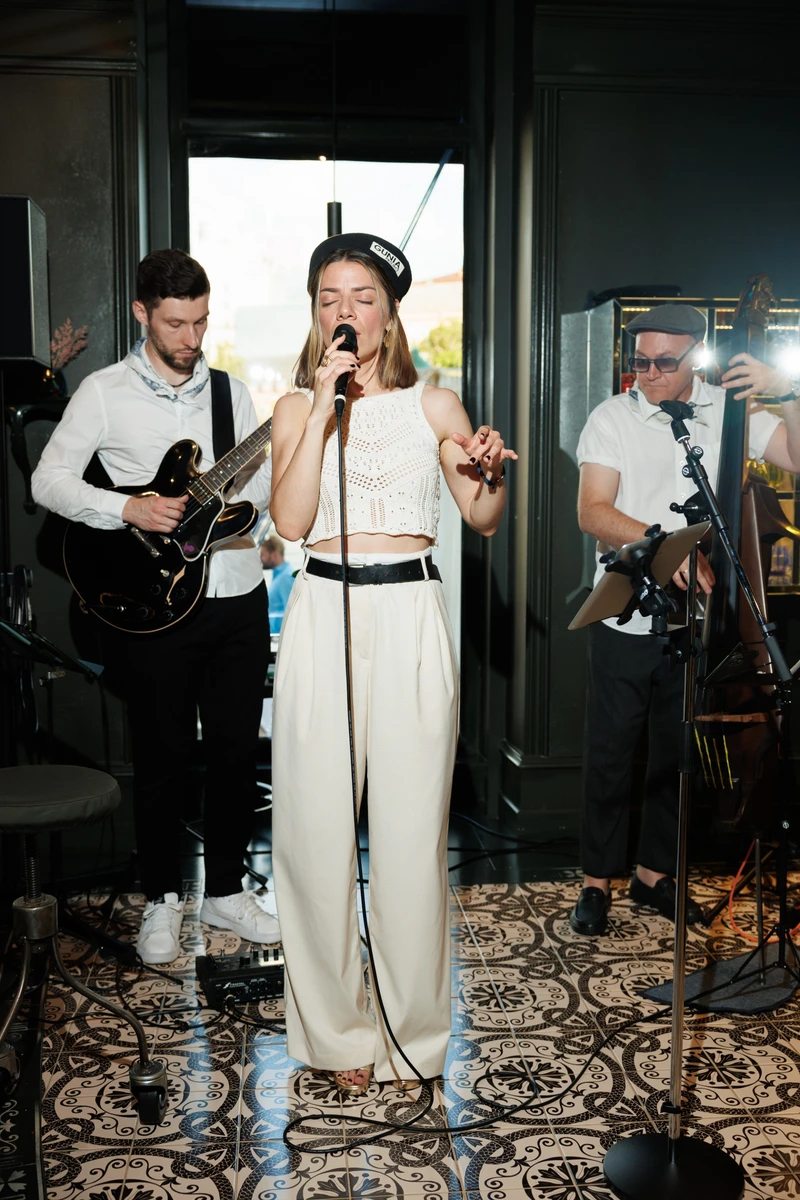 Музичний супровід забезпечила чарівна вокалістка Анна Кіндзерська у складі джазового тріо, створивши вишукану атмосферу вечора.