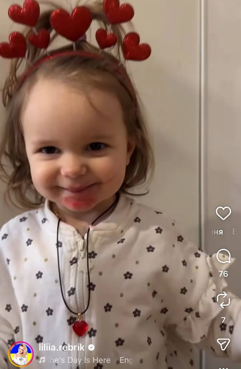 Акторка та телеведуча Лілія Ребрик у День святого Валентина насмішила спробою молодшої донечки, 1,5-річної Аделіни нафарбувати губи блиском.