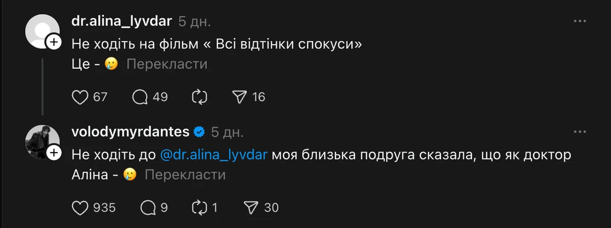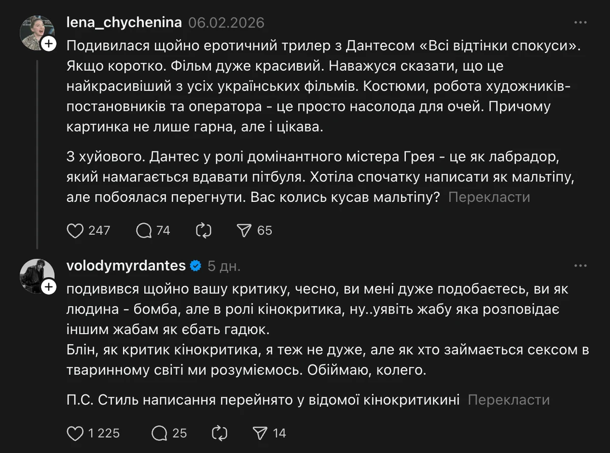 Цікаво, що на захист стрічки в коментарі приходить й сам Володимир Дантес.