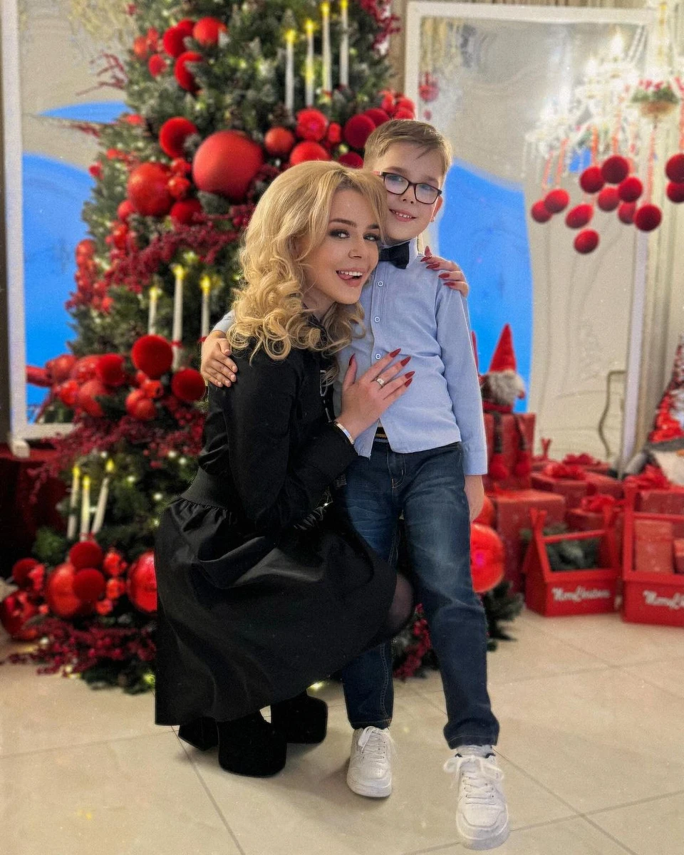 На світлинах Гросу в чорній сукні від Dior позує біля розкішної новорічної ялинки разом з сім'єю: з мамою Ганною, старшим братом Романом та молодшим на 22 роки - Михайликом. Також з ними на фото й племінники Аліни, діти її зведеного брата.