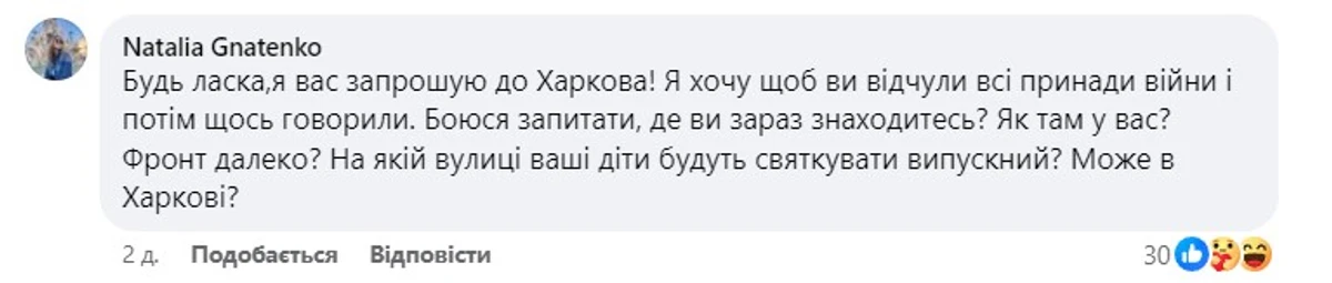 "Всі в захопленні.... Може то я єдиний, "фашиствующій нацик с ізвращьонним чувством прєкрасного", побачив в оцьому відео, де росіськомовні "діточки" танцюють випускний вальс о 5-й ранку - відвертий посил "спасать русскій мір в окупірованном нацистамі Харьковє"", - написав Антін (орфографію автора тут і далі збережено).