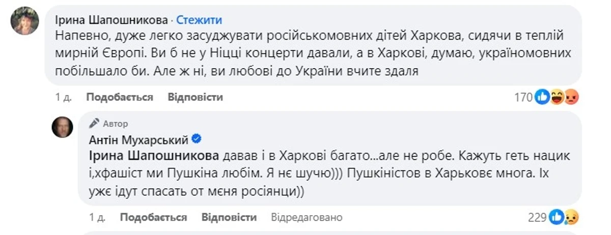 Чимало підписників Мухарського з ним погодилися, бо переконані: "за російською мовою прилітають російські ракети".
