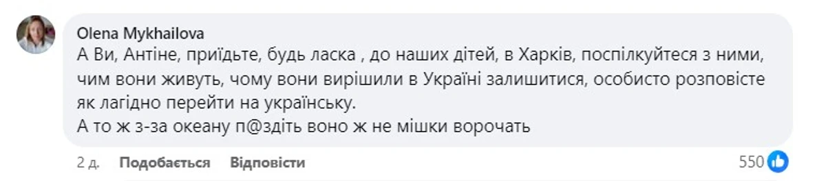 Антіна "запрошують" особисто приїхати до Харкова, дорікаючи тим, що артист висловлює свій патріотизм із-за кордону.