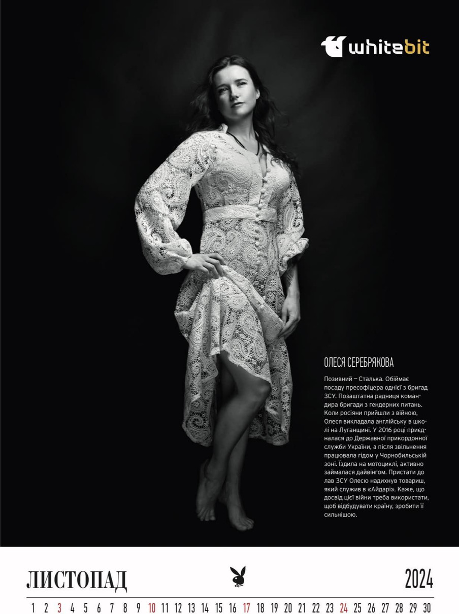 Playboy Ukraine до Нового 2024 року представив календар, в якому знялися волонтерки, бойові медикині та дівчата, які служать у ЗСУ. Фото з нього виклала членкиня Громадської антикорупційної ради при Міністерстві оборони України Дана Ярова, якій і належить ідея благодійного календаря.