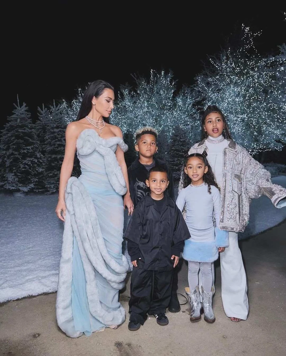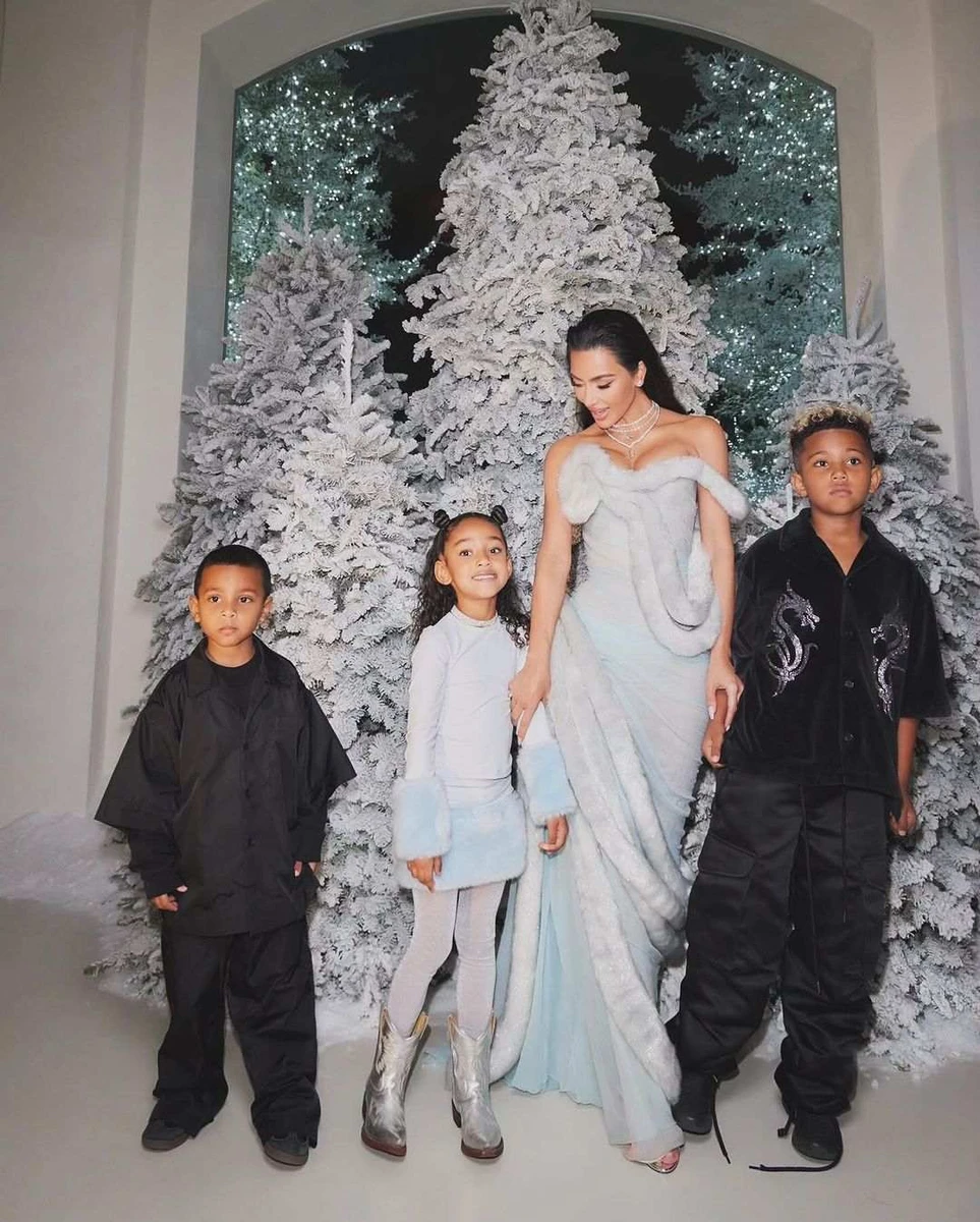 Американська реалітідіва Кім Кардашян зазнімкувалася зі своїми чотирма дітьми від Каньє Веста на тлі різдвяно-новорічного декору.