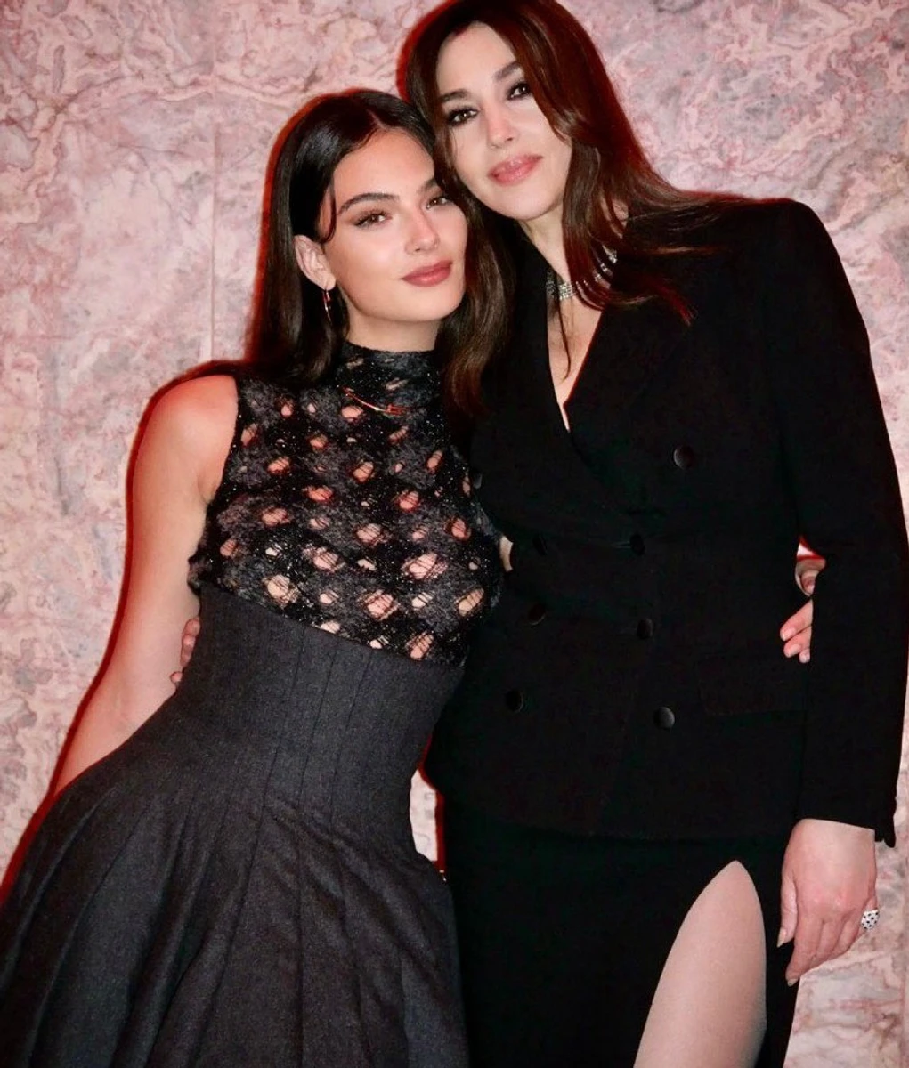 59-річна італійська акторка Моніка Белуччі та її старша донька від актора Венсана Касселя, 19-річна Дева, обидві в вишуканих чорних луках, попозували разом для фото.