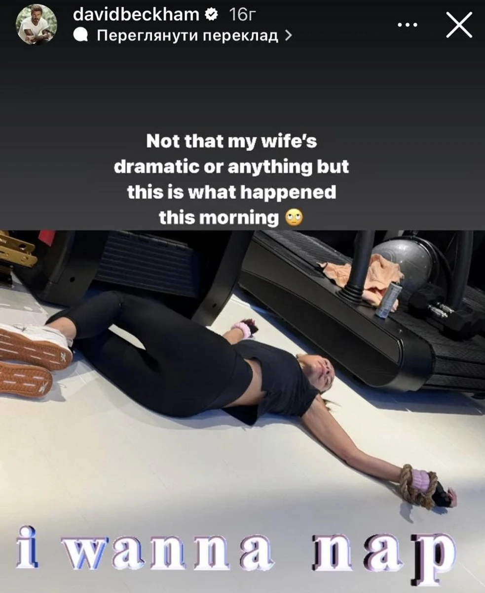 "Не те щоби моя дружина драматизувала чи ще щось, але сьогодні вранці сталося таке", - підписав Бекхем сторіс.