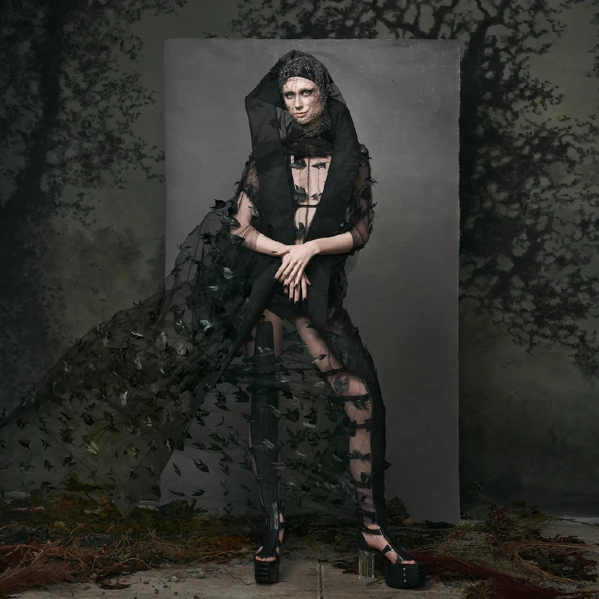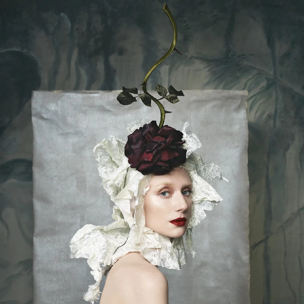 Окремої уваги заслуговує макіяж зірки та декорації. Знайшлося місце знімкам топлес із квітами, чудернацьким зачіскам й драматичному мейкапу.