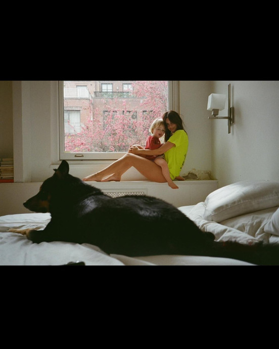 В своєму Instagram Ратаковскі також запостила серію фото з сином Сильвестром від попереднього шлюбу та показала себе-білявку.