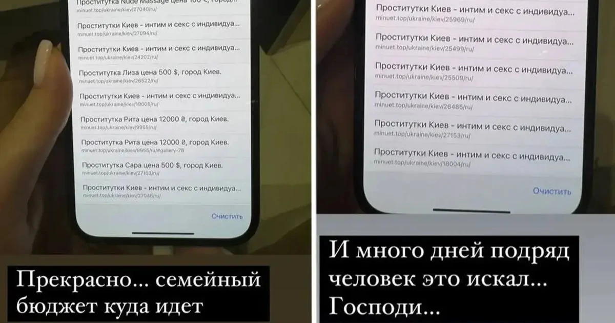 Крім того Анна показала частину переписок невірного із "дамами" та пошукові запити його телефона, з яких випливає, що Зубков користується послугами ескортниць.