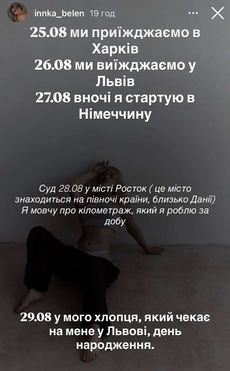 Про це Інна розповіла в Insta-сторіс. Додатковою прикрістю для неї стало те, що 29-го серпня день народження в її чинного бойфренда, а їй доведеться бути в цей час за 1200 кілометрів від нього.