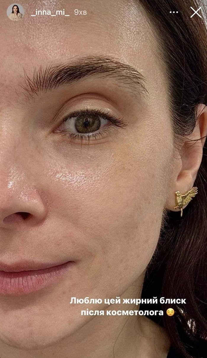 "Айфон вирішив нагадати, який вигляд я мала 7 років (!!!) тому. Ніби хотів підбадьорити і сказати, що хоч ніч була важка, погляд втомлений, АЛЕ! Ось мої безтурботні 29 років. Зморшки на лобі, носогубні. Брови... я мовчу", - написала Інна.