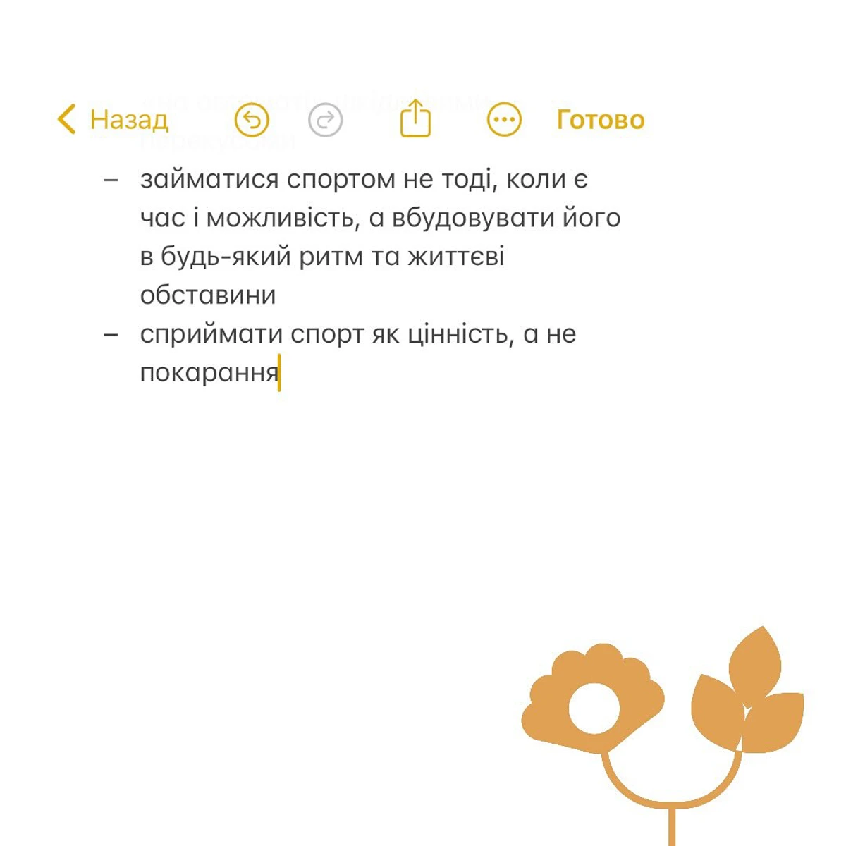 "Нащо я це роблю? Насправді моя ціль не - 4 кг, а глибинна зміна підходів до турботи про своє тіло зсередини й ззовні; трансформація свідомості та зміна багаторічних некоректних звичок.