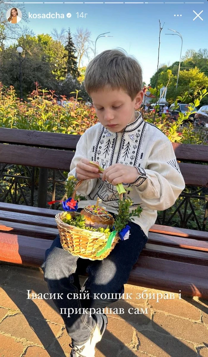 Катя опублікувала світлину зі старшим сином, 7-річним Іваном та зазначила, що хлопчик самостійно збирав собі святковий кошик.