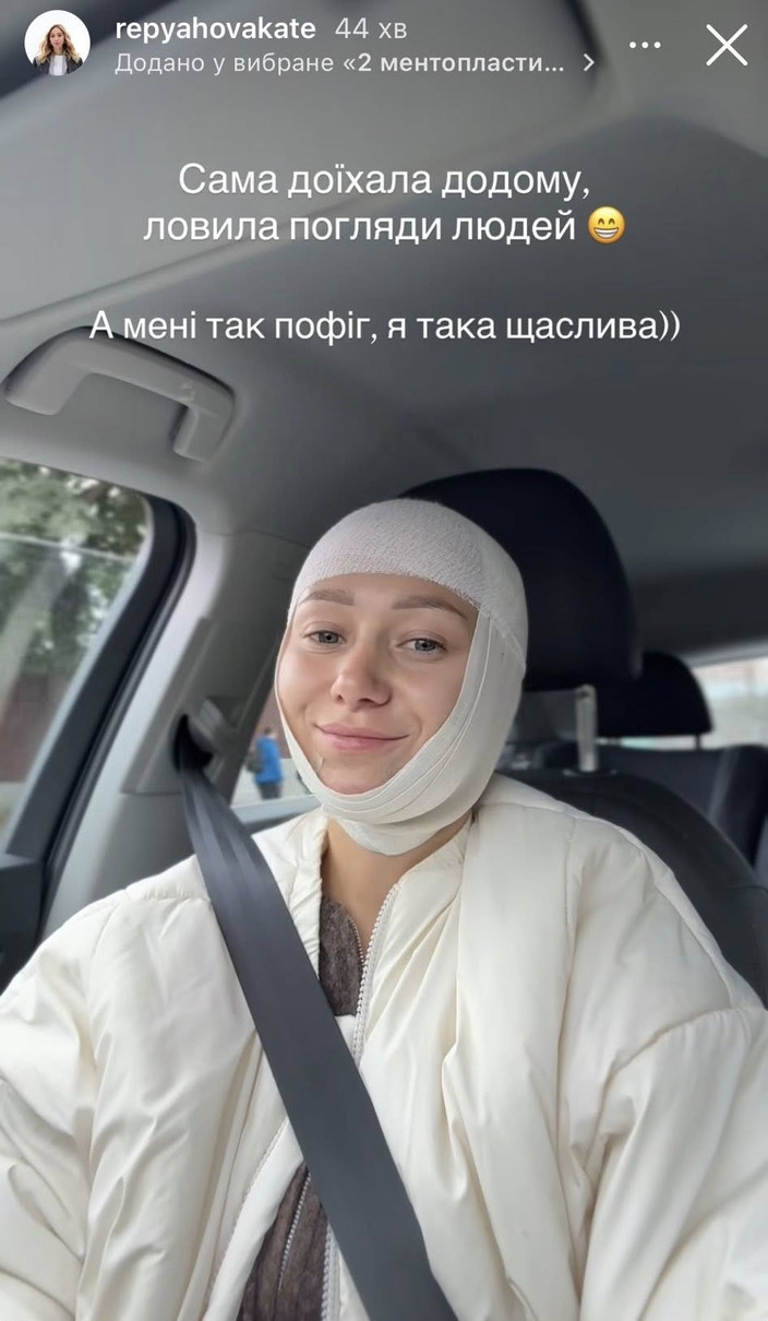 Репяхова поділилася фотоколажем - знімком, зробленим на 3-4 день після першої операції та підборідді, та свіжим, вже після другої.