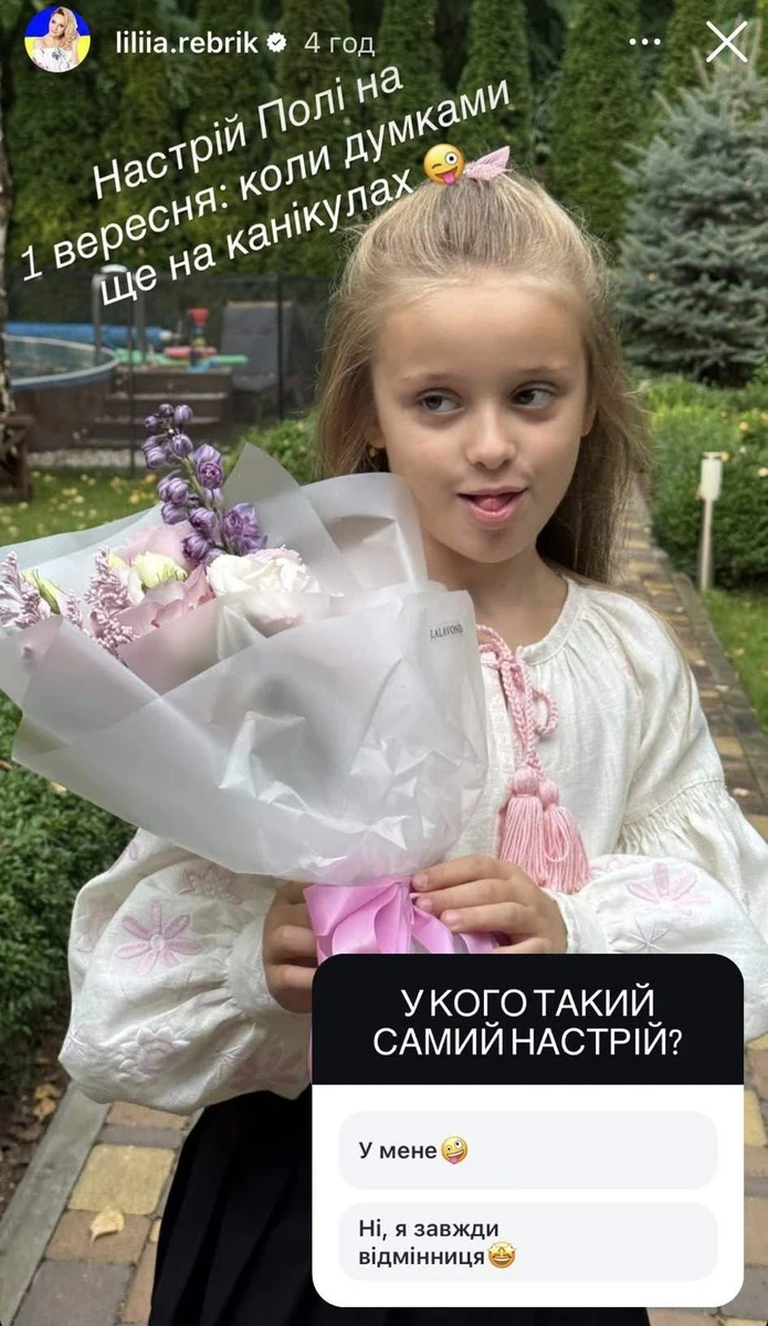 Телеведуча Лілія Ребрик, у чиїй із хореографом Андрієм Диким є дві школярки, 13-річна Діана та 7-річна Поліна, показала, як 1-го вересня відвезла дівчат на урочисту шкільну лінійку.