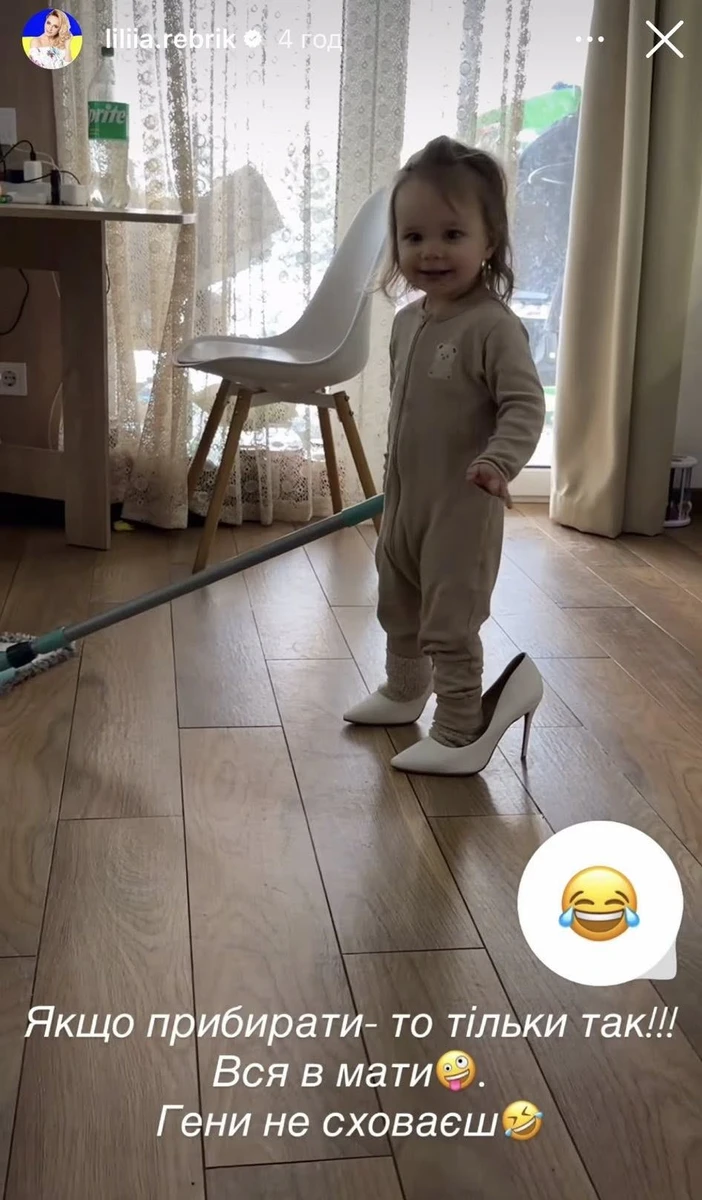 Як кумедне дівча "прибирає" в хаті, влізши у туфлі на підборах, батьки зняли на відео. Ліля поділилася ним у Insta-сторіс.