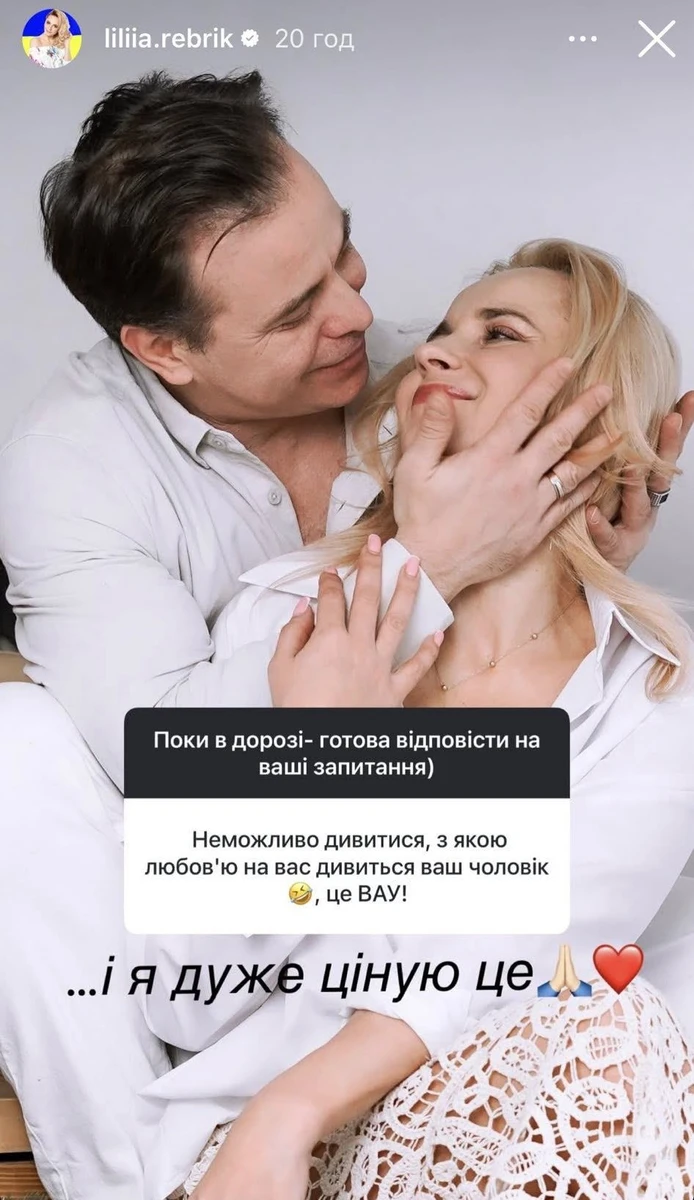 Нагадаємо, Лілія розповідала, що в їхніх із Андрієм стосунках не буває криз і комусь вони би навіть видалися нудними. До речі, нащодавно Ребрик насмішила реакцією середньої дочки на поцілунок мами з Юрієм Горбуновим у фільмі "Потяг до Різдва".