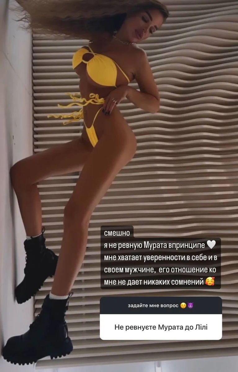 А ще підписники ж поцікавилися, чи не ревнує Анастасія Мурата до його колишньої дружини Лілії. Жінка зазначила, що впевнена у собі та коханому.