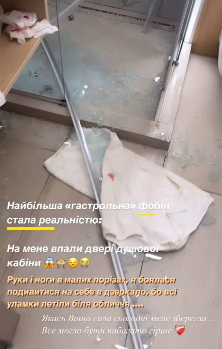 "Уламки летіли біля обличчя": на Огнєвіч у готельному душі впали скляні двері. Фото
