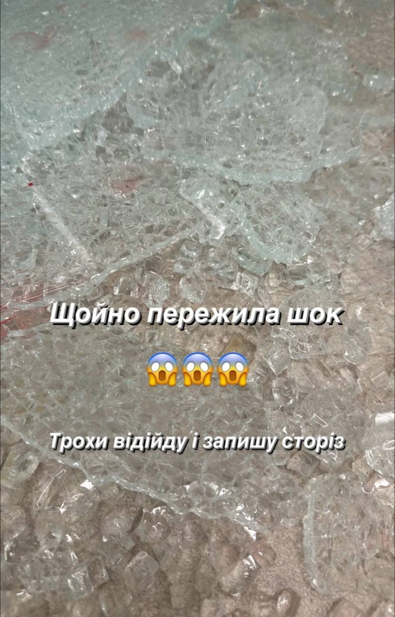 "Я в шоковому стані. Мене до сих пір всю трясе. На мене впали двері душової кабіни тоді, коли я приймала душ. Всі уламки летіли біля обличчя. Не бажаю нікому таке пережити, це дуже страшно, жахливо... у мене шок.