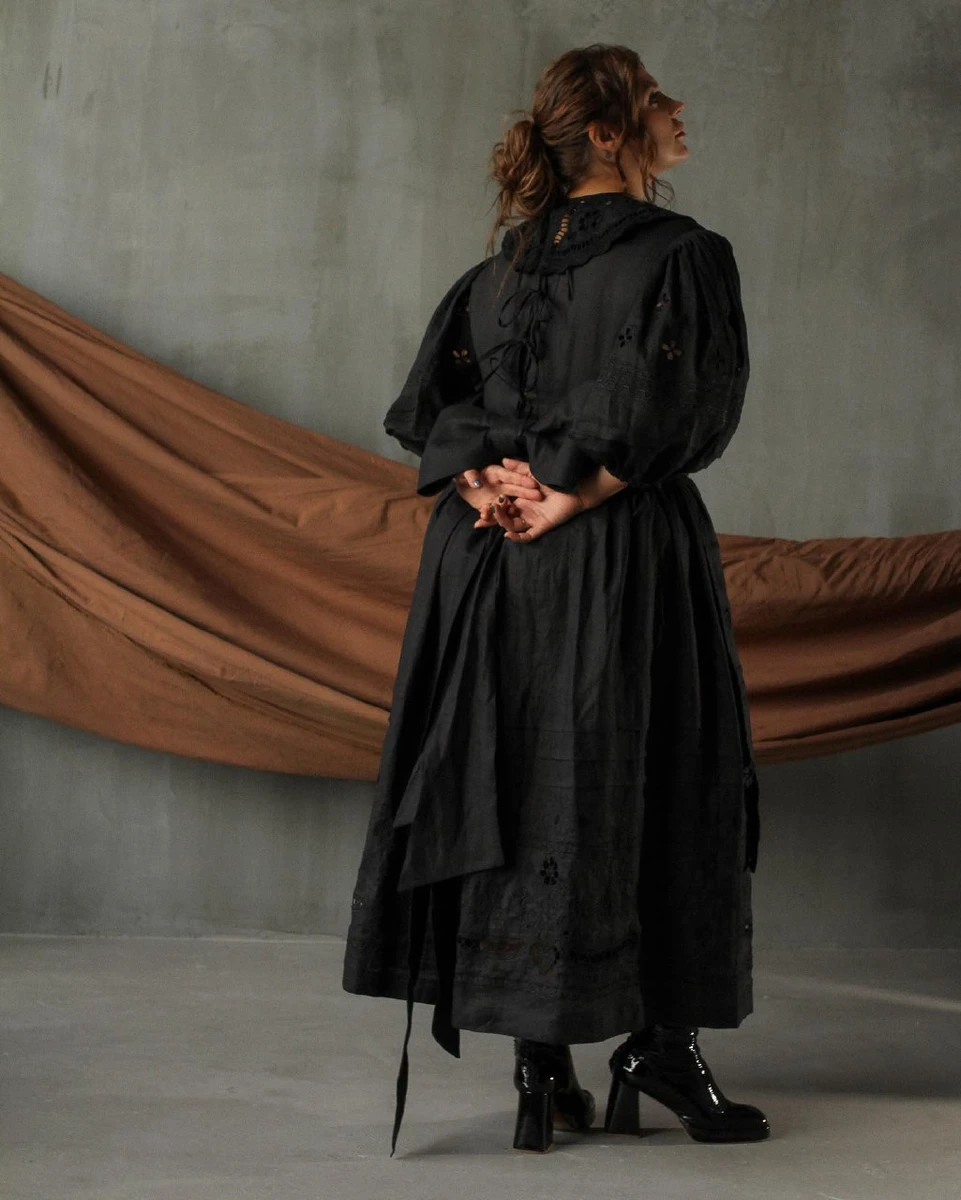 На створення цієї сукні дизайнерку Наталю Кириченко та експертку з нематеріальної культурної спадщини Ярину Сізик надихнули святкові родинні фотографії українців початку ХХ сторіччя.