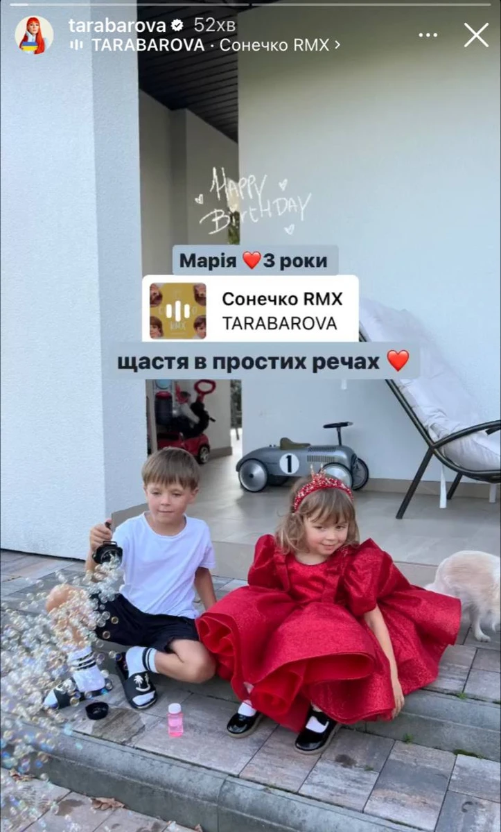 "Наша мрія — Марія! Сьогодні тобі 3 роки. 3 роки, як я заціловую твої солодкі щічки й дивуюсь, як така маленька дівчинка може бути такою розумною, веселою та доброю водночас. Мрій і ніколи не зупиняйся! Ми поруч, наше сонечко", - написала Тарабарова.