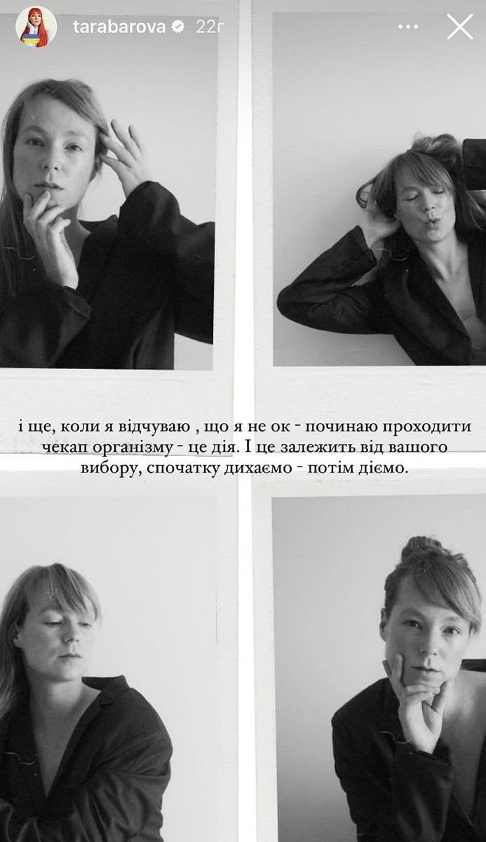 "І ще, коли я відчуваю, що я не ок - починаю проходити чекап організму - це дія. І це залежить від вашого вибору, спочатку дихаємо - потім діємо", - додала вона.