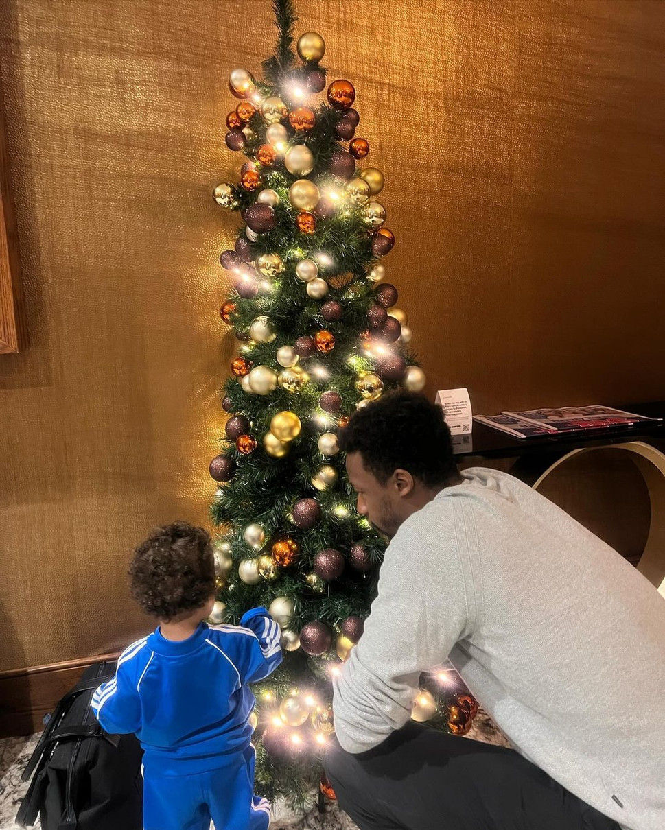 "Коли рік закінчується, ми згадуємо прості, але цінні моменти щастя. Стоячи перед цією ялинкою, ми з моєю маленькою принцесою шлемо вам побажання тепла, любові та сміху. Нехай свята принесуть вам радість та мир. Усіх зі святом". - написав Монфіс.