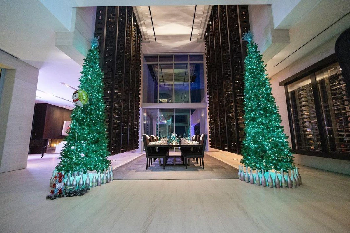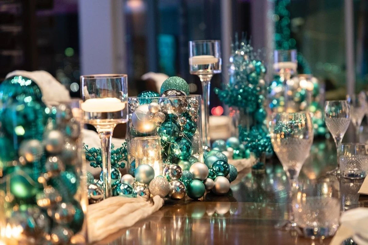 Довгокосі красуні для святкування обрали бірюзово-блискучі сукні. В декорі Вонг теж дотримувалася цього кольору.