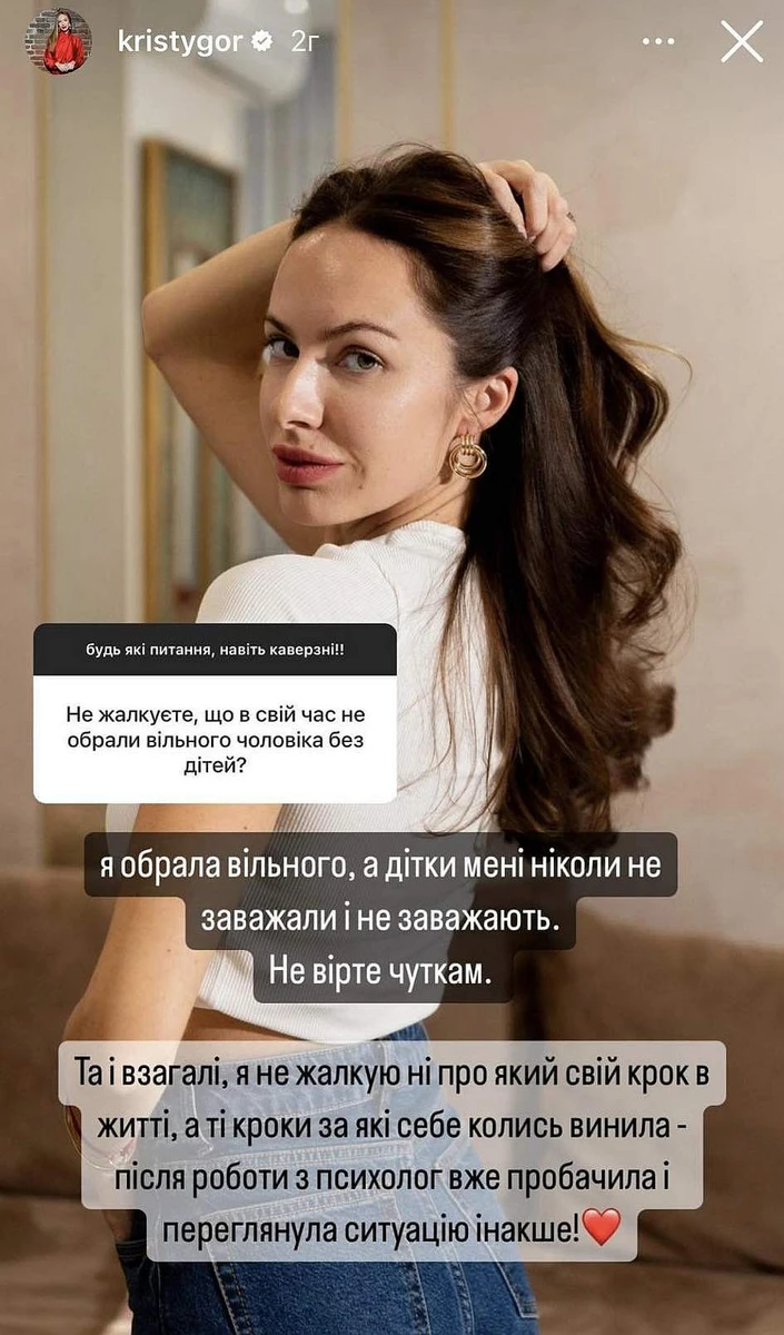 "Якщо відмотати час назад - я нічого б не міняла. Моє життя, мій досвід!! Багато за що є дякувати, але багато чого не хочеться в своєму особистому житті і порушує мої цінності і кордони!", - написала жінка.