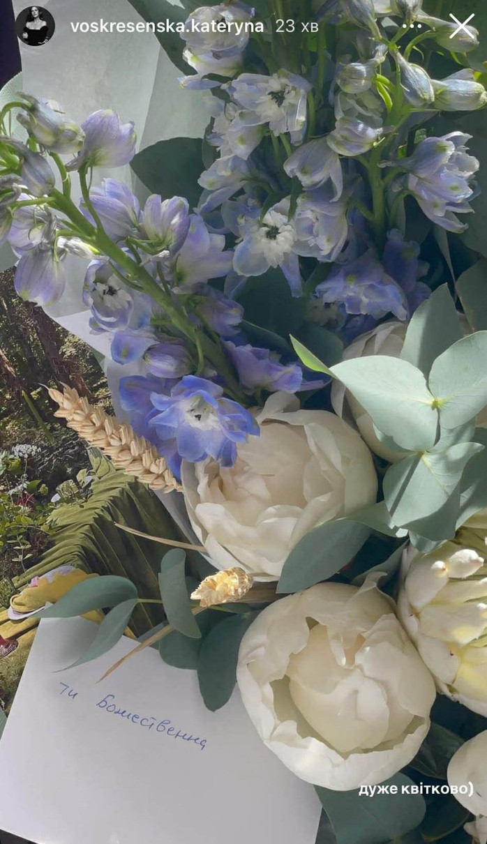 Трохи романтичної святкової атмосфери вона показала у Insta-сторіс. Зокрема Катерина поділилася милими записочками від бойфренда, який називає її "божественною" і дякує богу за той день, від якого вони разом.