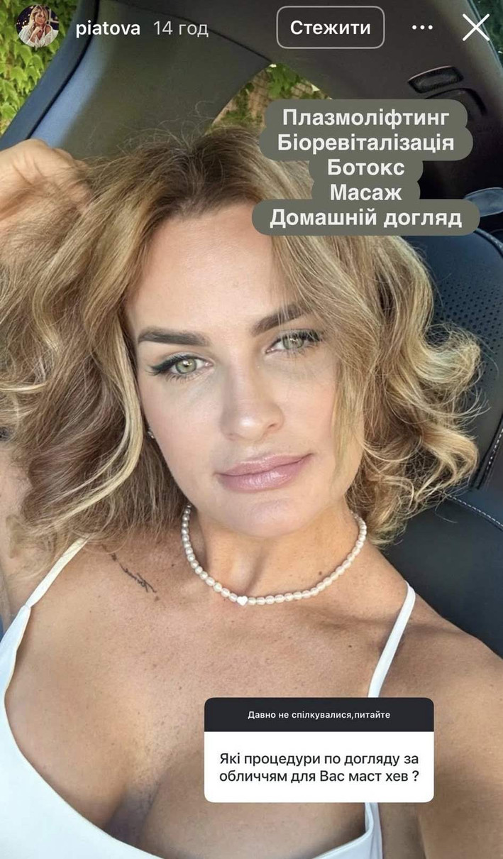 Не стала Юлія приховувати, що, крім домашнього догляду, робить і деякі процедури, як-от плазмоліфтинг, біоревіталізацію, уколи ботоксу, масаж обличчя.