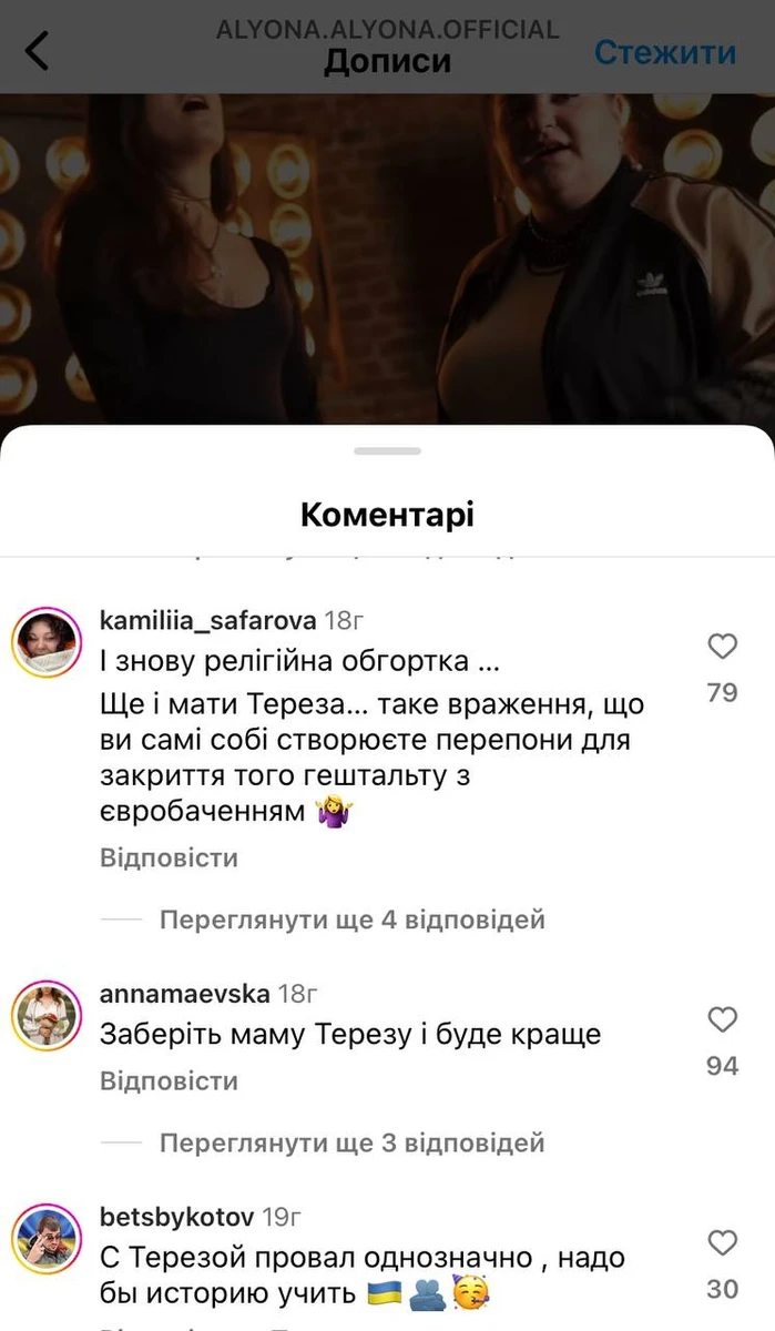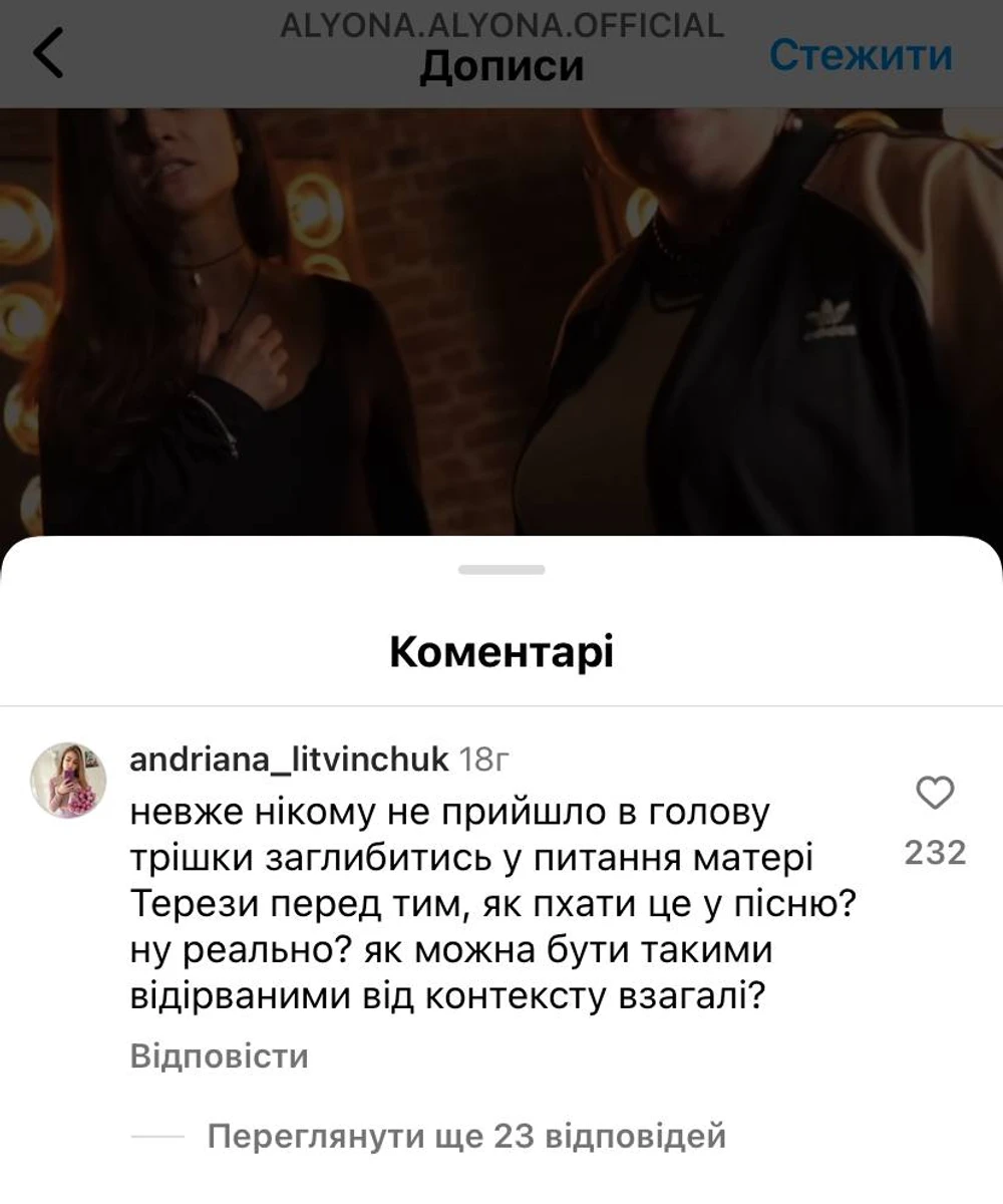 Фіналістки Нацвідбору на Євробачення 2024 реперка alyona alyona та співачка Jerry Heil презентували свою пісню "Teresa & Maria". Втім деякі фанати розкритикували вибір персонажів для пісні.