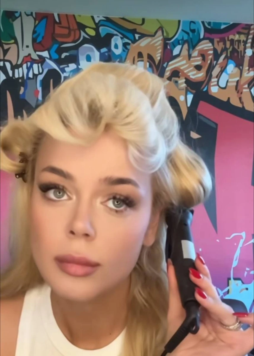 Аліна почала накручувати волосся з чубчика. За словами самої співачки, така зачіска віддає їй вайбом 90-х. Накручені пасма Аліна старанно фіксує і заколює.