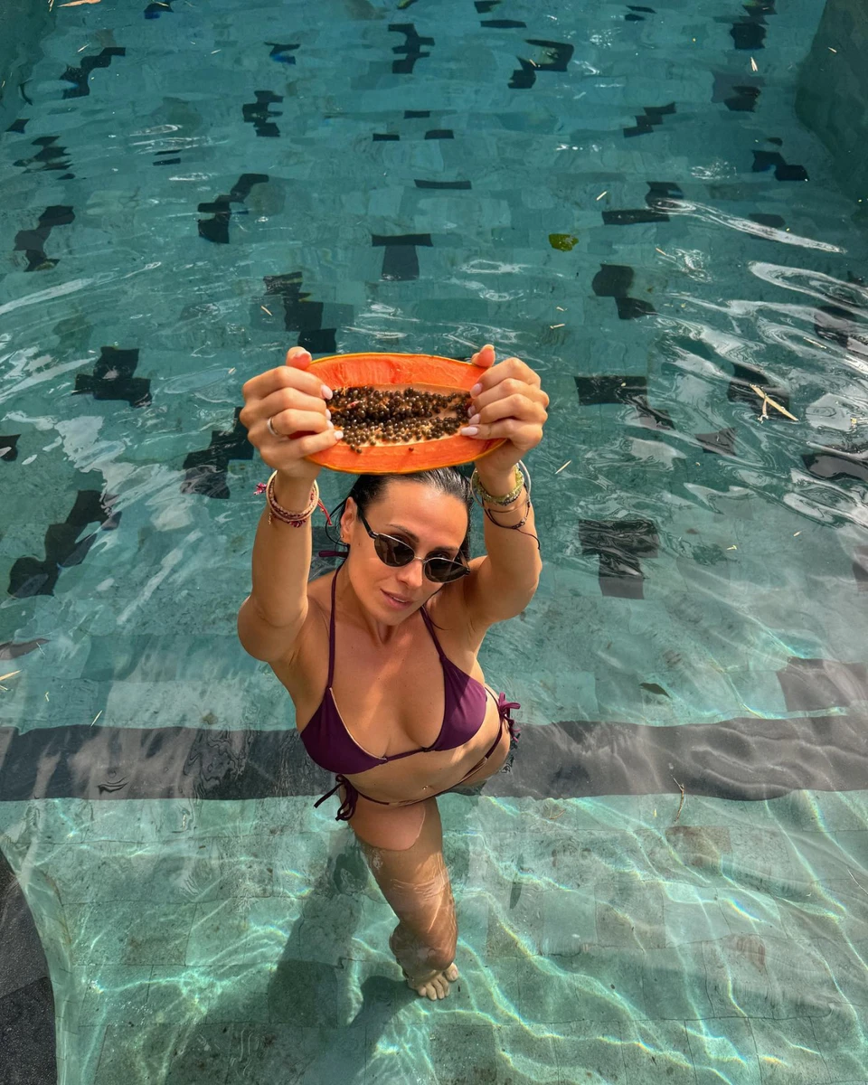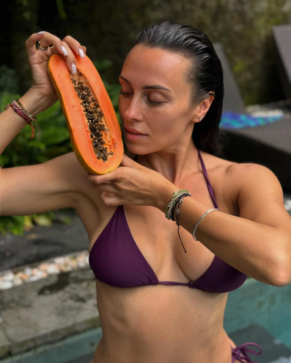 Наостанок 37-річна Нана запостила пікантні фото в купальнику з папайєю між ніг.