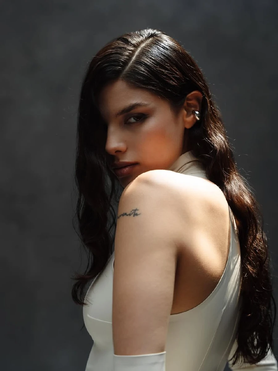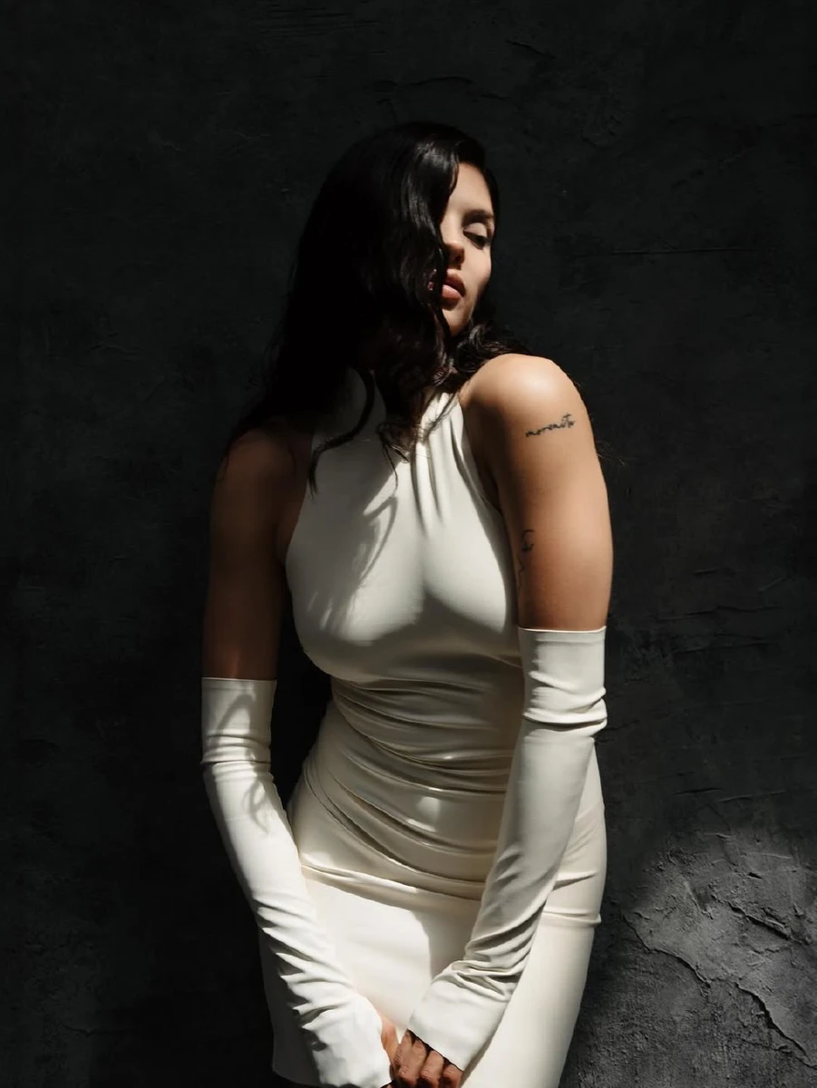 Співачка та актриса Мішель Андраде наробила спокусливих фото в молочній сукні.
