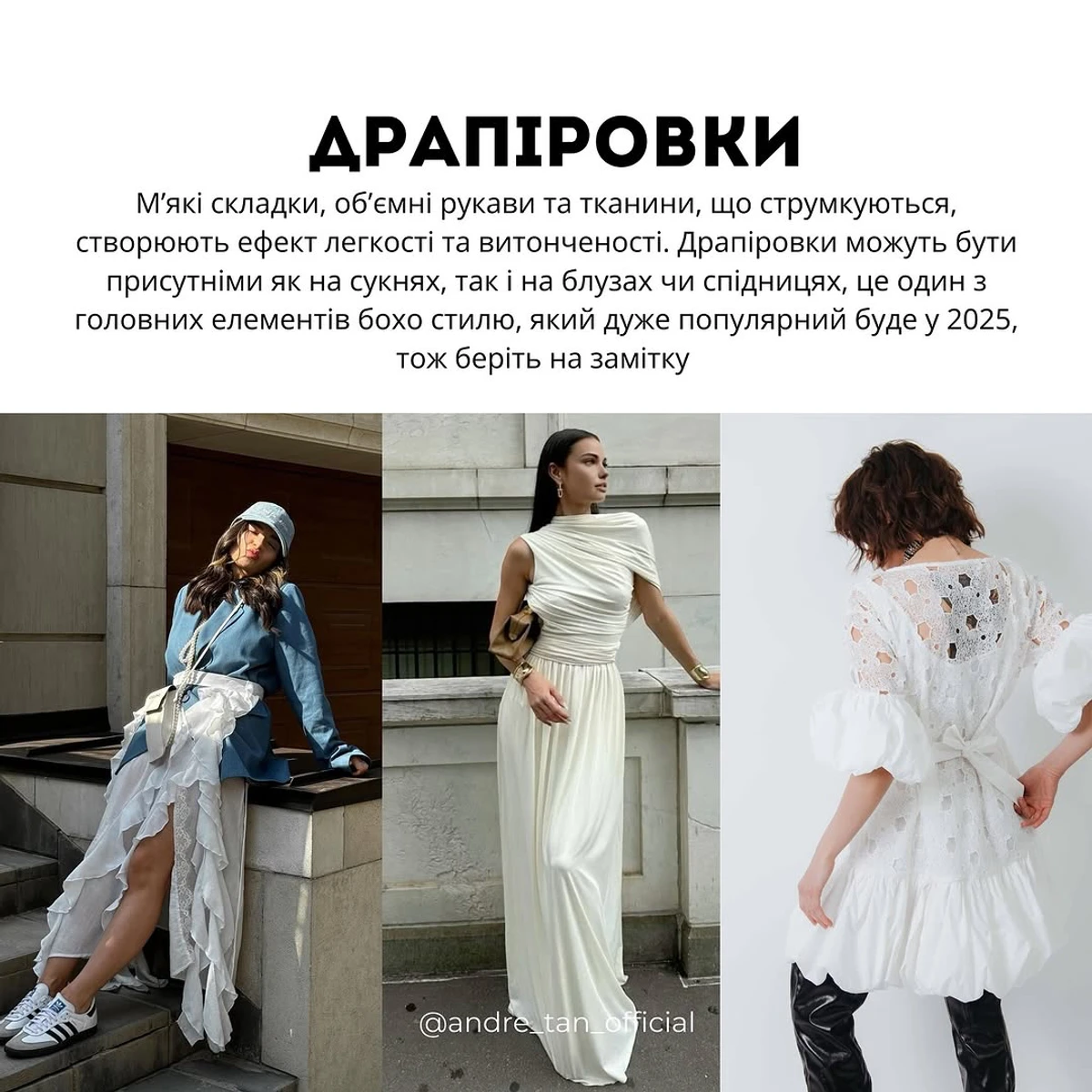 Драпіровки, корсети і бахрома: Андре Тан розказав, чим оновити гардероб до весни