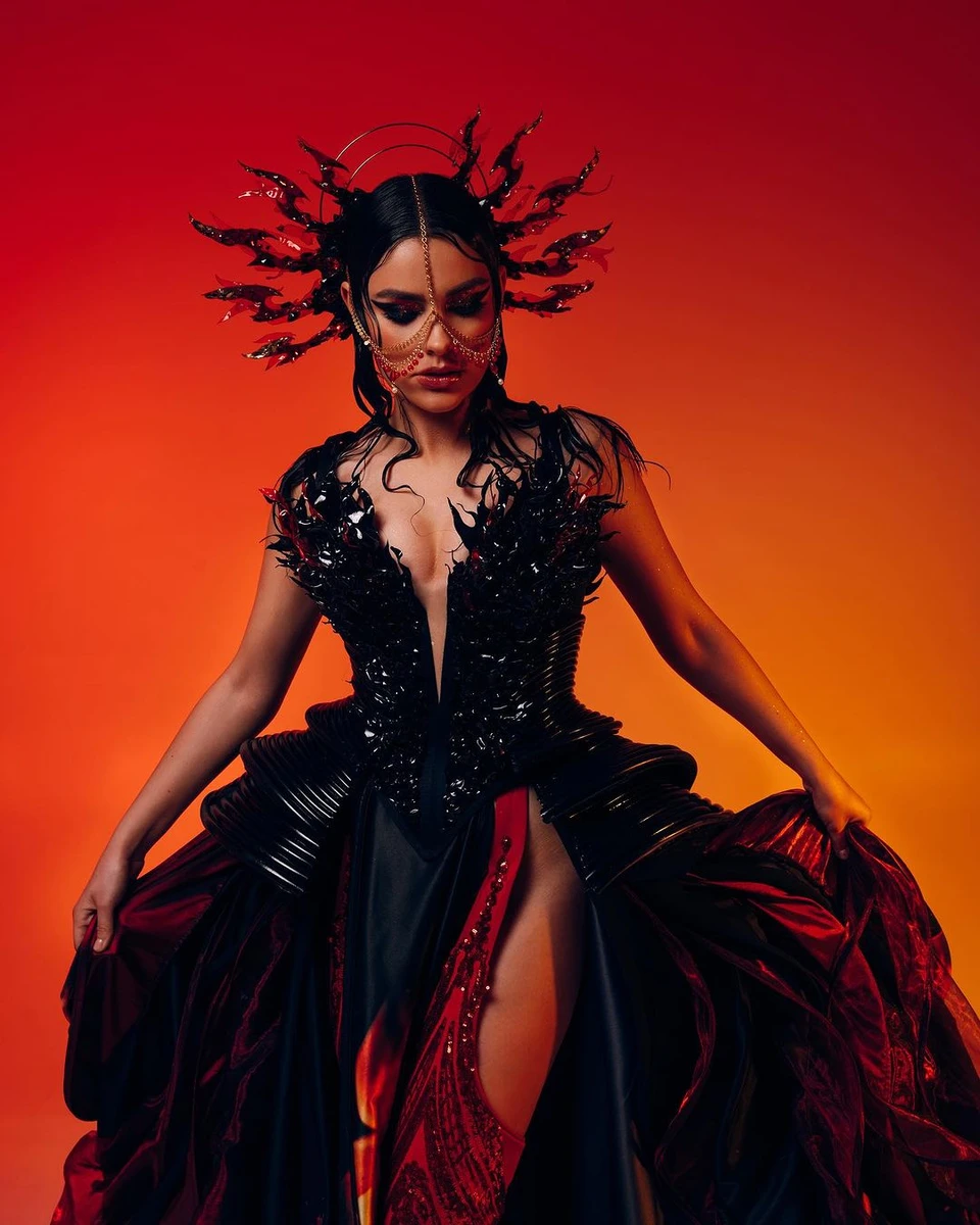 Образ не лише мав ефектний вигляд, але й ніс символізм - Ангеліна через лук намагалася передати проблему лісових пожеж. До речі, аутфіт увійшов до Топ-3 у категорії "Найкраща ЕКО-сукня".