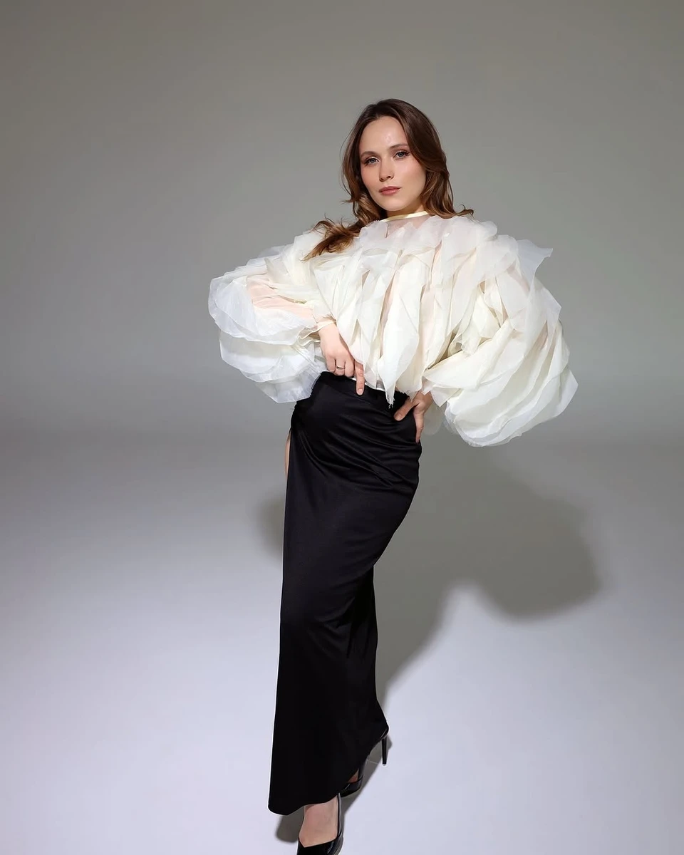 Акторка Анна Кошмал, яка у березні стала мамою вдруге, приміряла ефектний аутфіт для нової фотосесії. Вбрана в повітряну блузу та спідницю з дуже високим розрізом, 30-річна зірка "Села на мільйон" постала перед камерою в граційних позах.