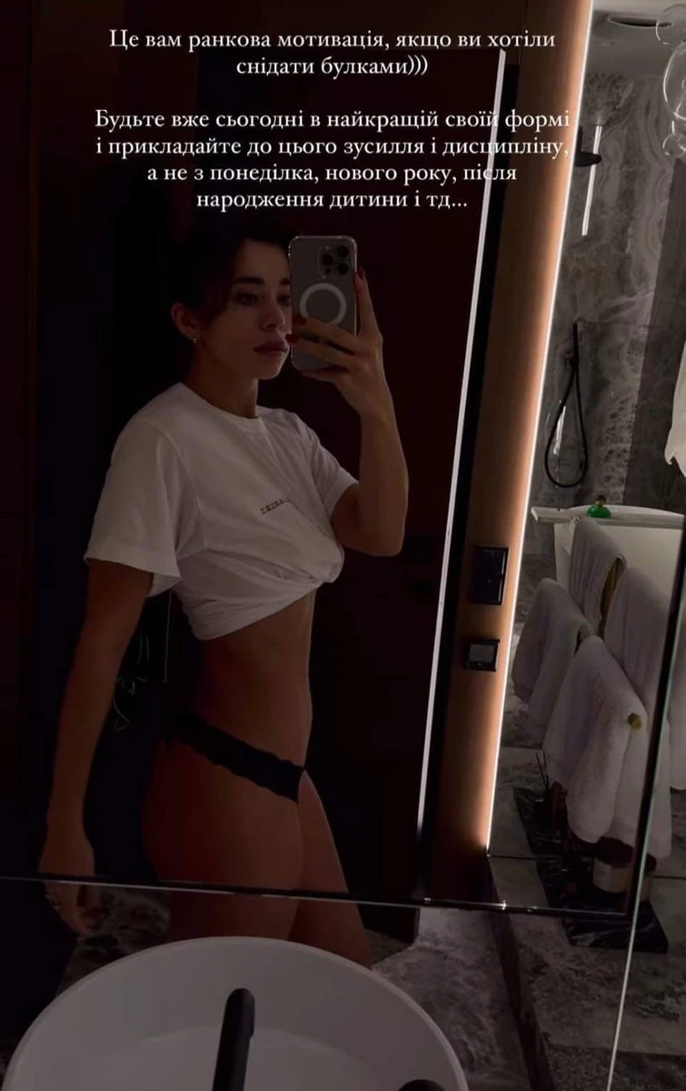 "Це вам ранкова мотивація, якщо ви хотіли снідати булками. Будьте вже сьогодні в найкращій своїй формі і прикладайте до цього зусиль і дисципліну, а не з понеділка, нового року, після народження дитини тощо", - порадила вона.