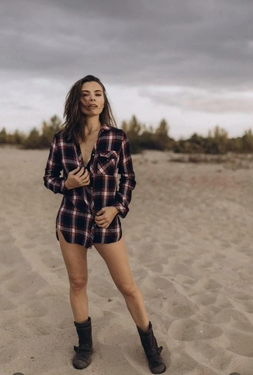 Її кокетливий лук складався зі спіднього, картатої сорочки та чобітків.