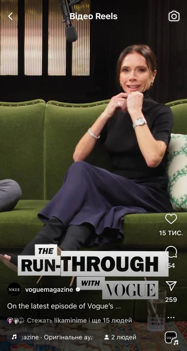 Потім Бекхем згадала свою нещодавню розмову з редакторкою журналу Vogue Анною Вінтур.