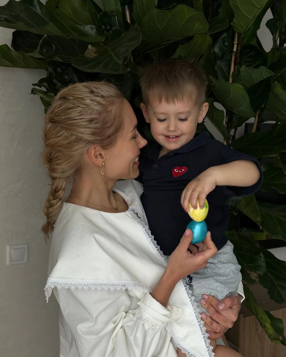 Квіткова у міні з незвичним коміром посвятила паску з 2-річним сином. Фото