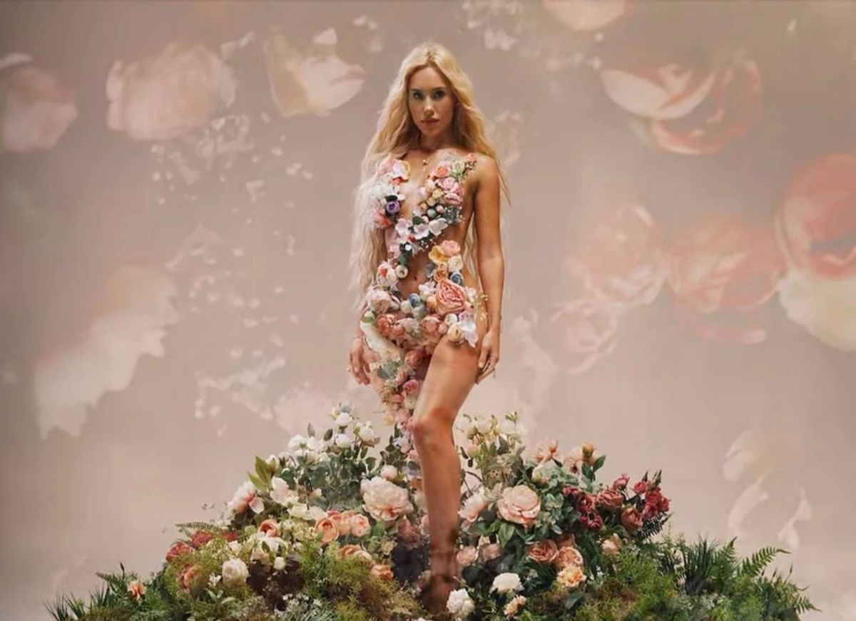 Оголена Квіткова з трояндами на грудях уявила себе музою для весняного кампейну. Фото