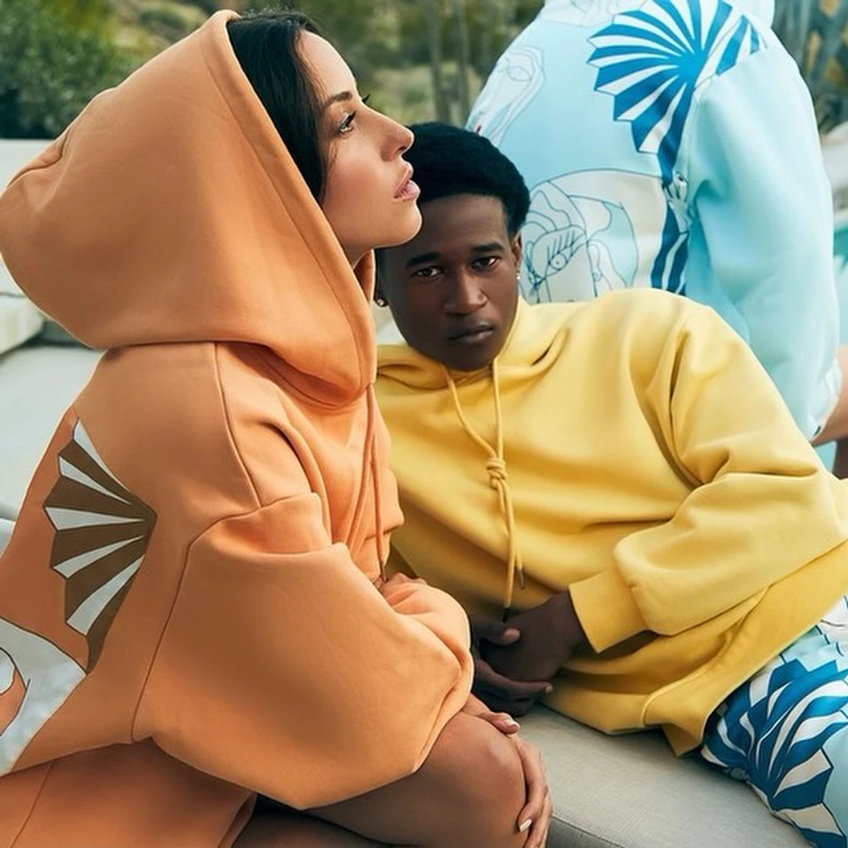 Красуня, яка нещодавно з’їхалася з актором, знялася у кампейні американського бренду UTER. Для зйомки вона попозувала в яскравих костюмах із принтом та худі.