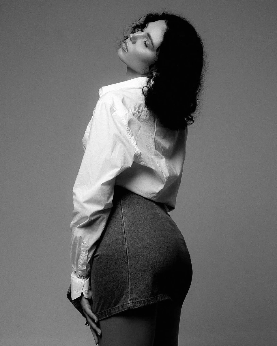 Ексдружина Богдана на білому тлі підкреслила стрункі довгі ноги міні-денімом