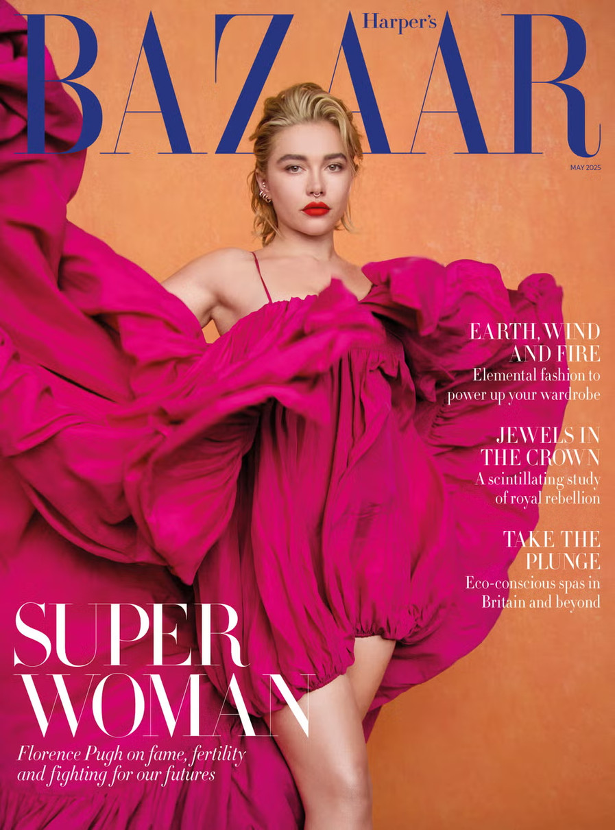 Британська акторка Флоренс П'ю, яка відома роллю у "Дюні" та фільмах Marvel, стала головною героїнею травневого випуску журналу Harper's Bazaar UK.