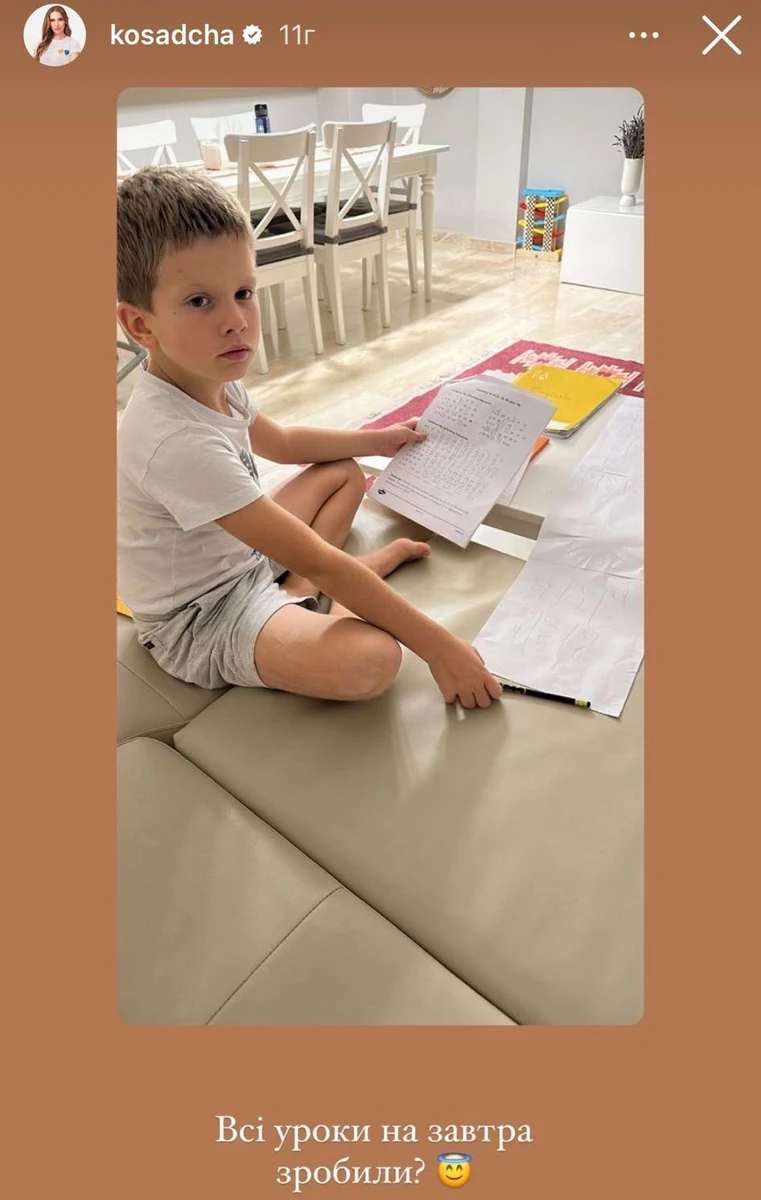 Осадча ж, показуючи забавки чоловіка з синами, згадала, як у дитинстві страждала на домашкою, і тепер має знову це проходити з обома молодшими.