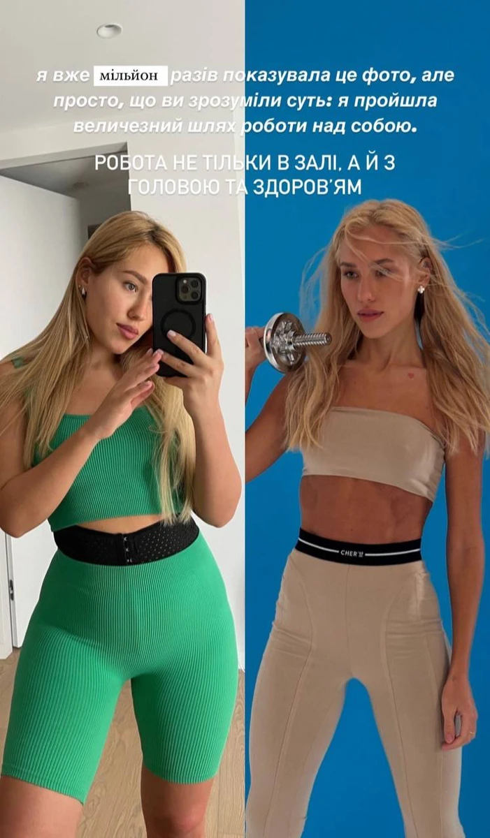 І хоча на початку війни блогерка закинула спорт, зараз її Instagram кожного дня сповнений мотиваційним фотозвітом зі спортзалу.